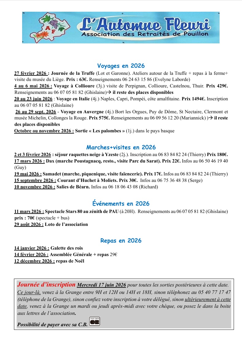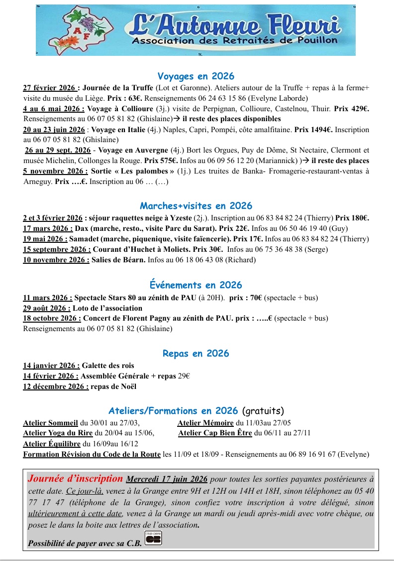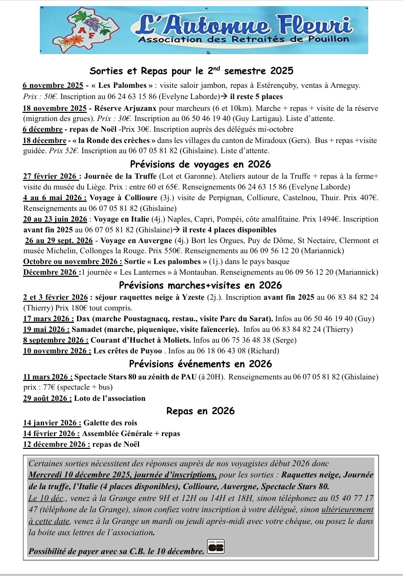 Voyages, Sorties, Repas